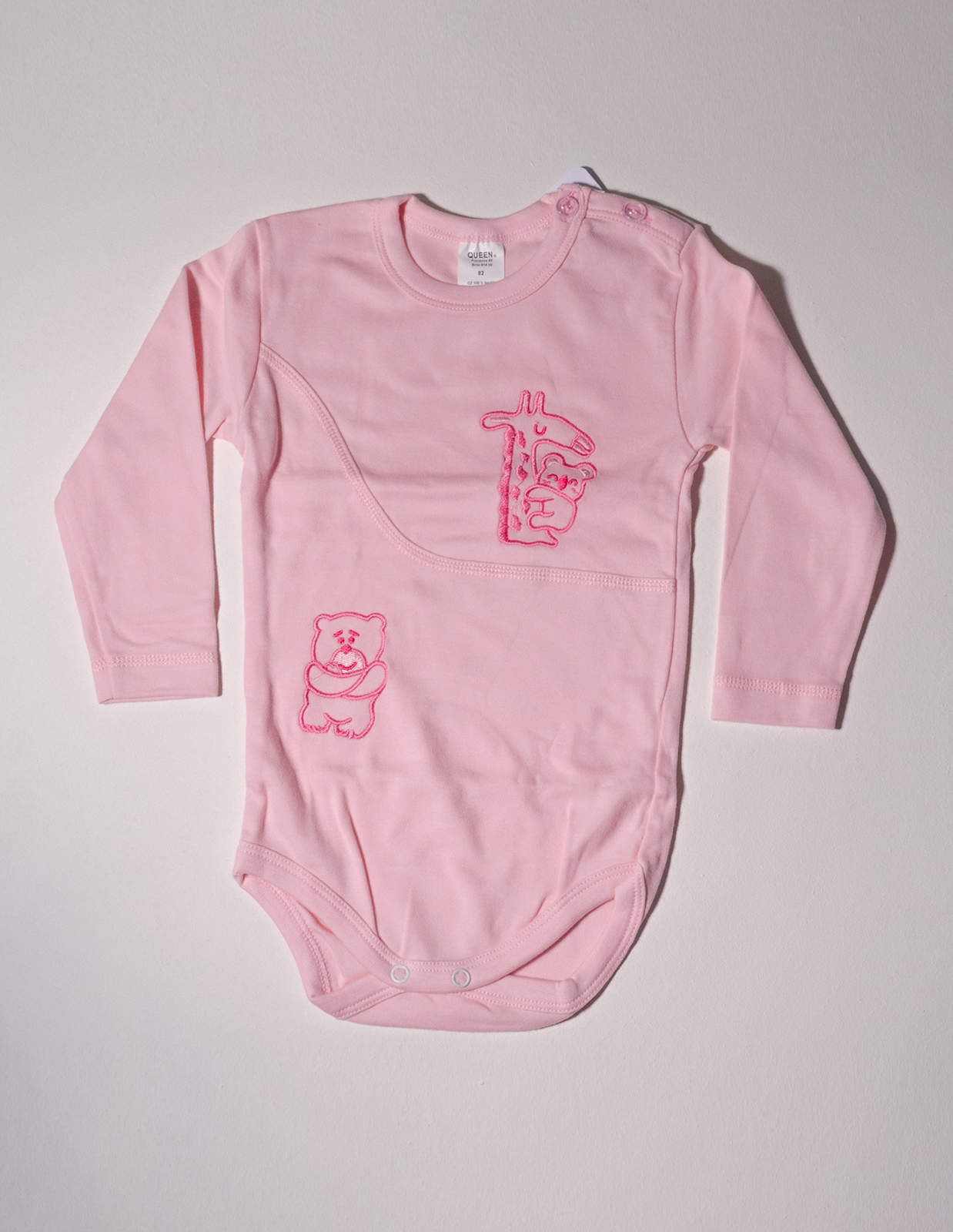 Dětské body s dlouhým rukávem zdobené výšivkou.