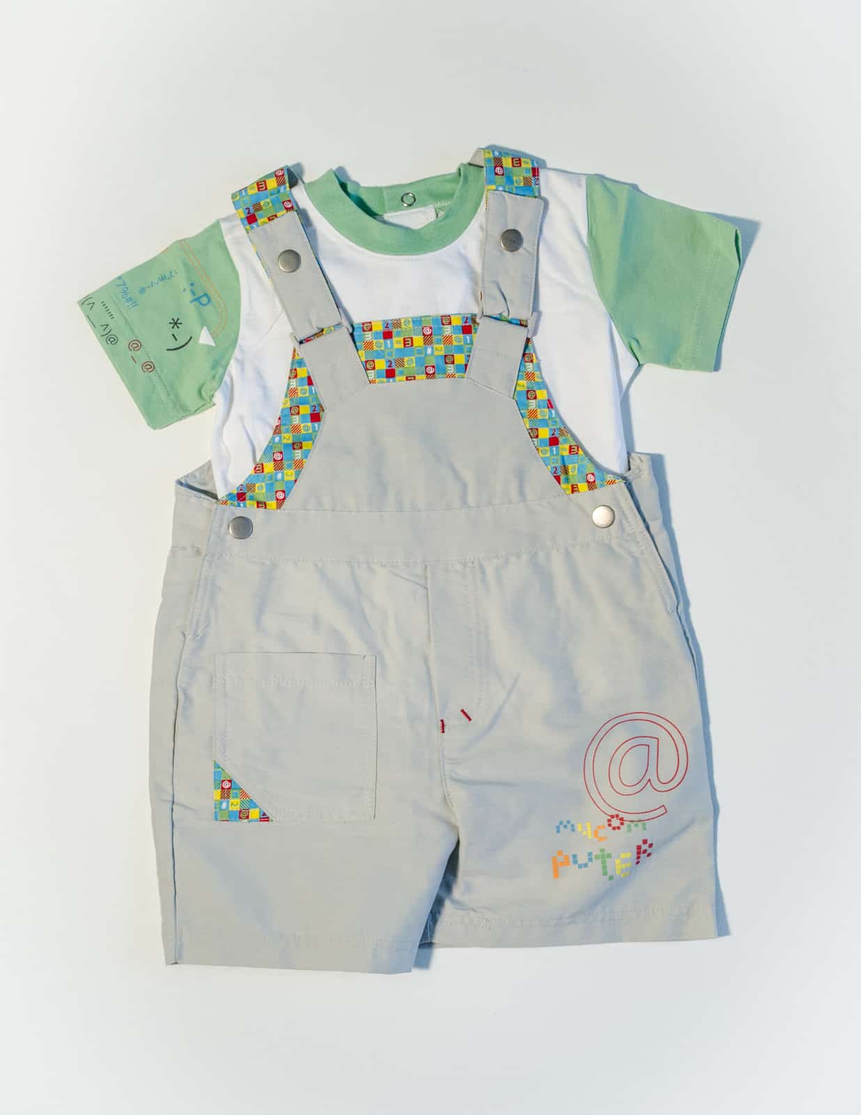 Dětský komplet krátkých kalhot a trička, zdobený potiskem.