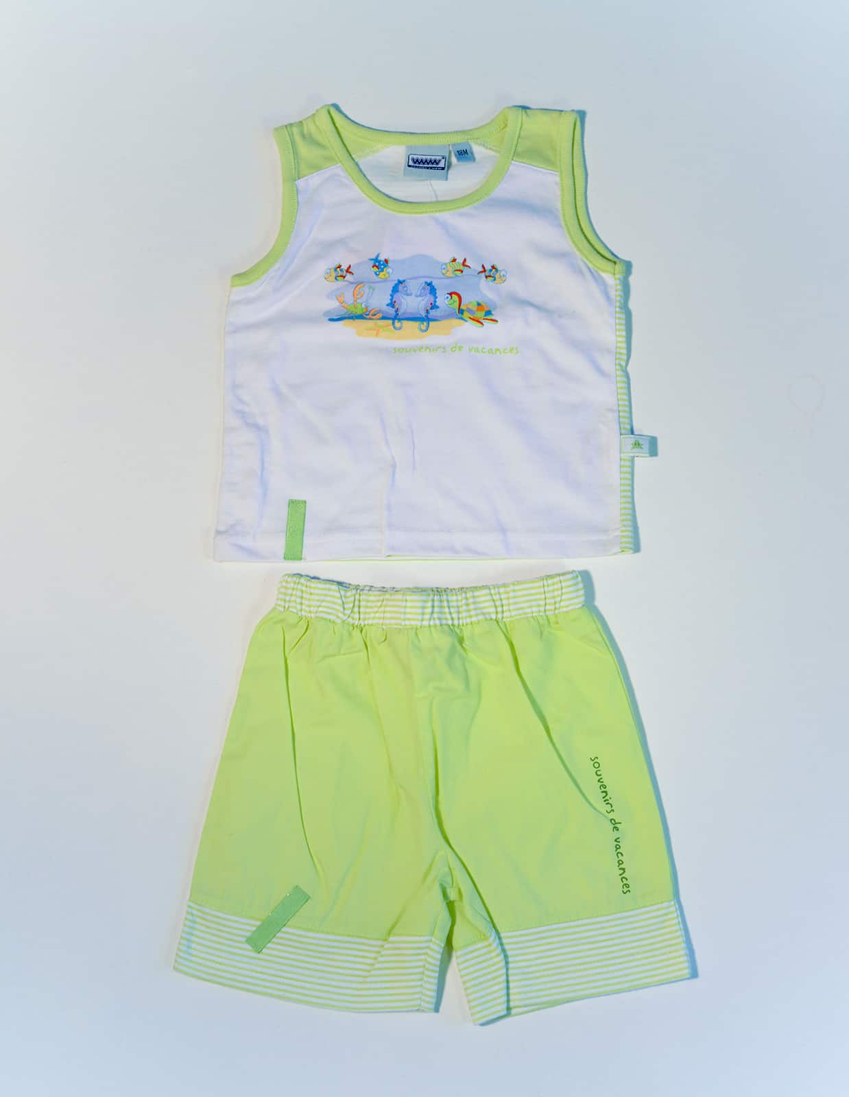 Letní bavlněný komplet kalhotek a tílka, zdobený potiskem.