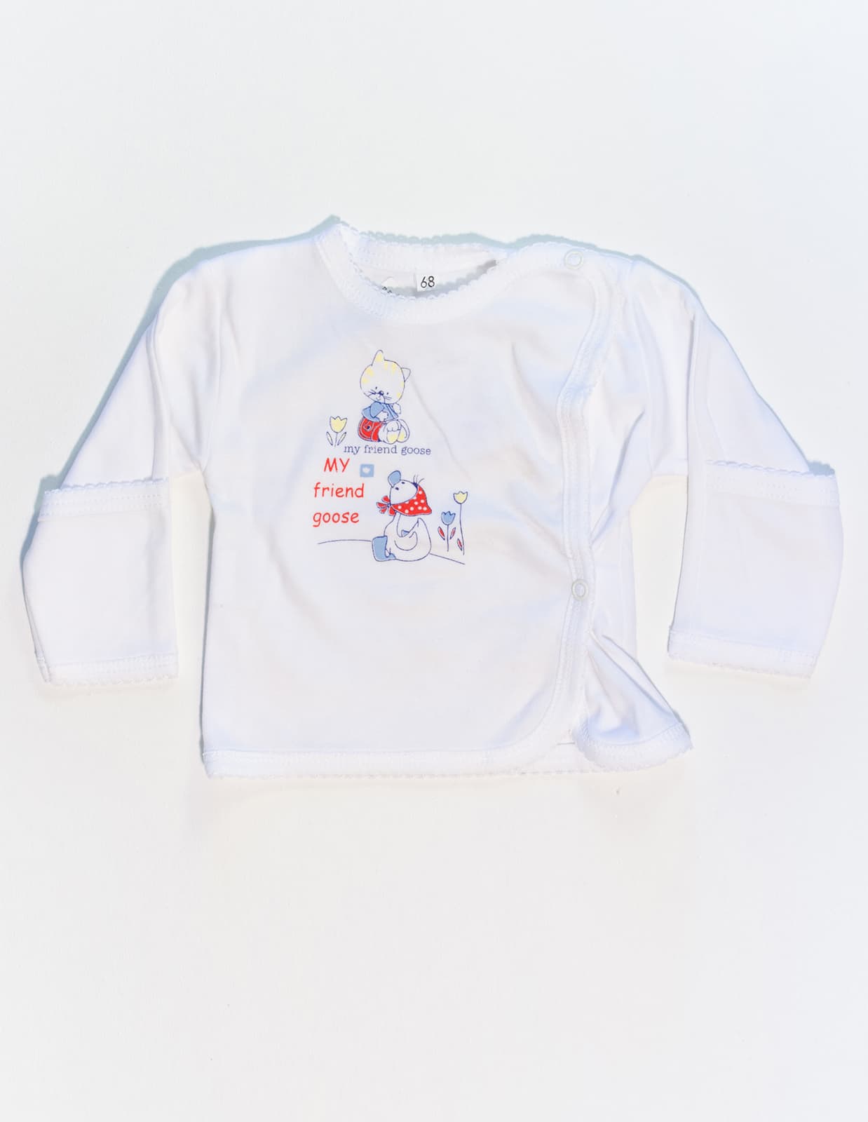 Kojenecká košilka s praktickým zapínáním na patentky, zdobená potiskem.
