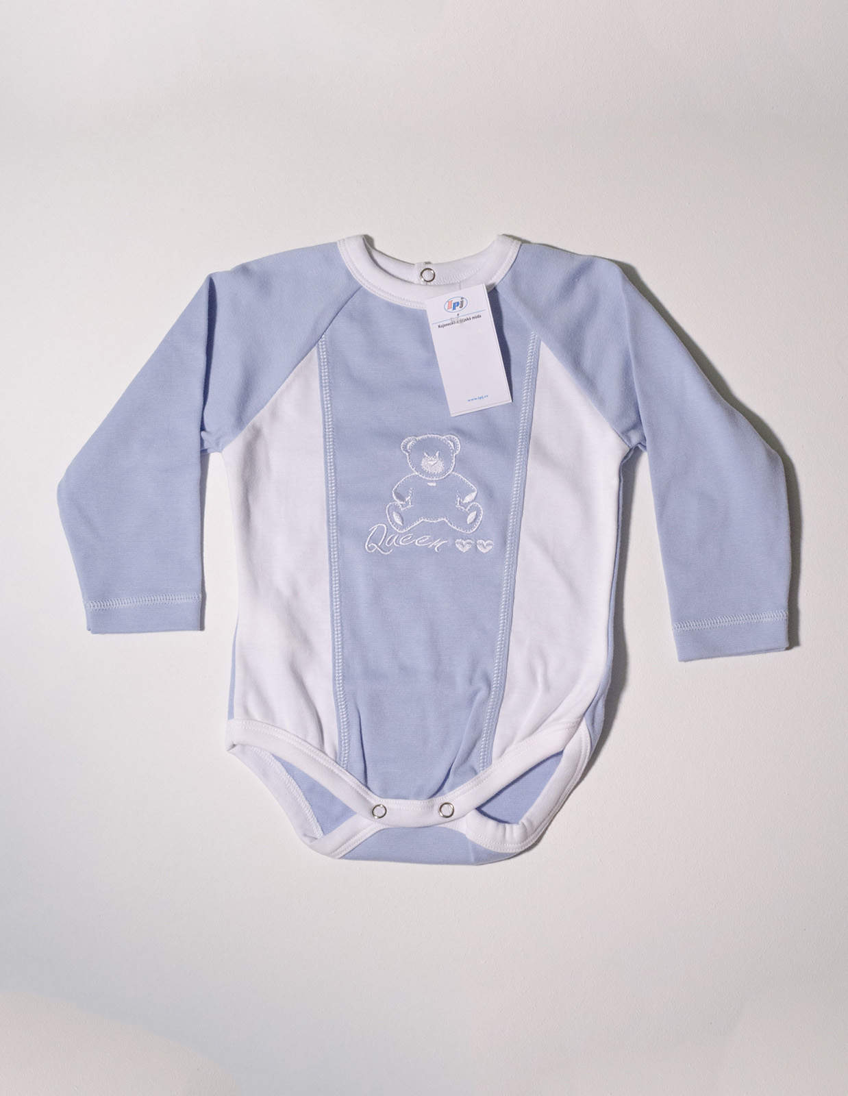 Kojenecké body s dlouhým rukávem zdobené výšivkou.