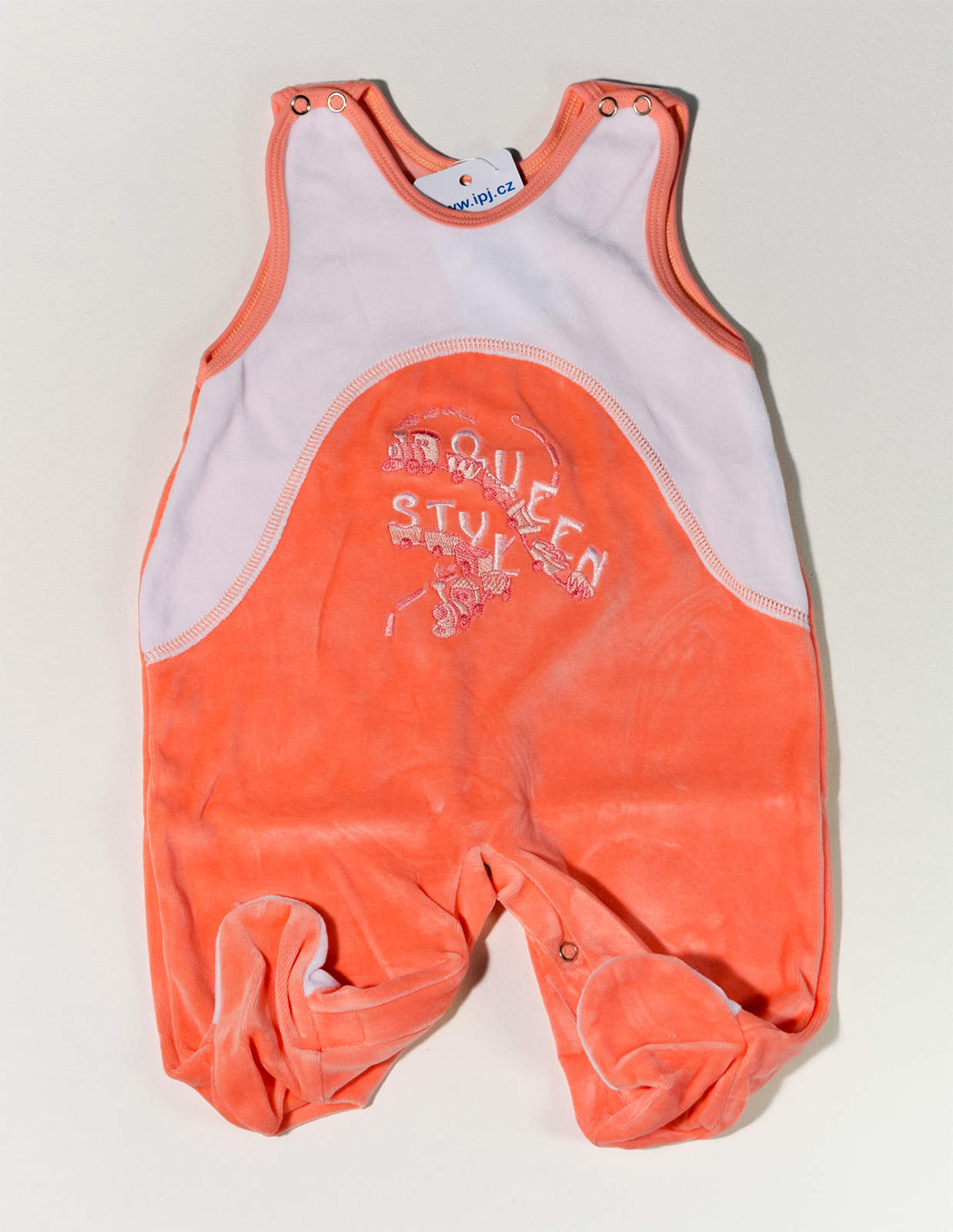 Hebké kojenecké dupačky zdobené výšivkou.