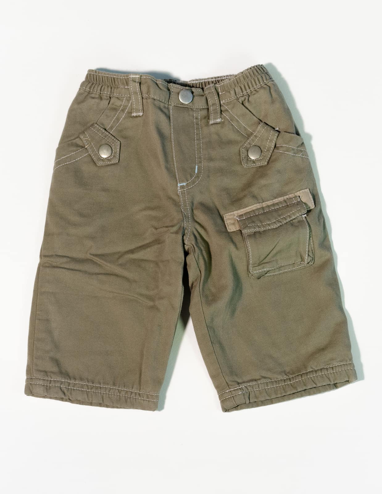 Plátěné kojenecké kalhoty s praktickou gumou u pasu.