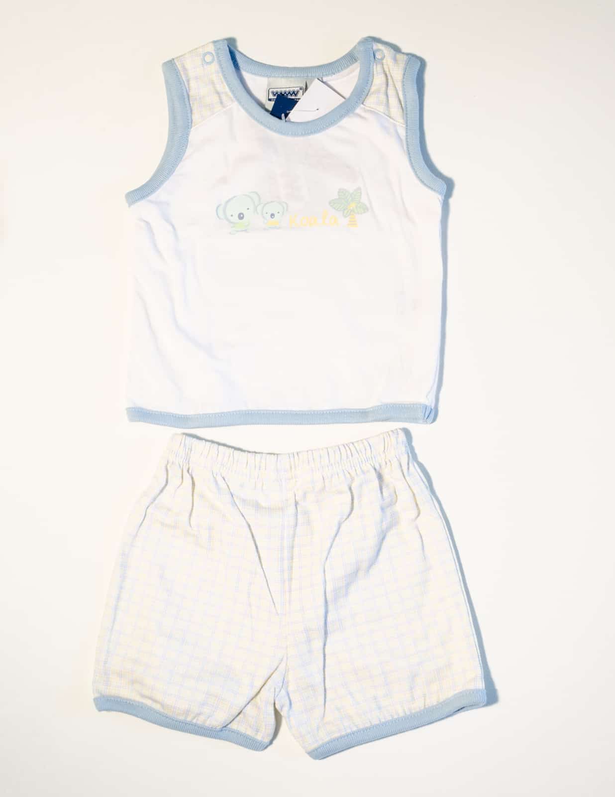 Letní bavlněný komplet tílka a krátkých kalhot, zdobený potiskem.