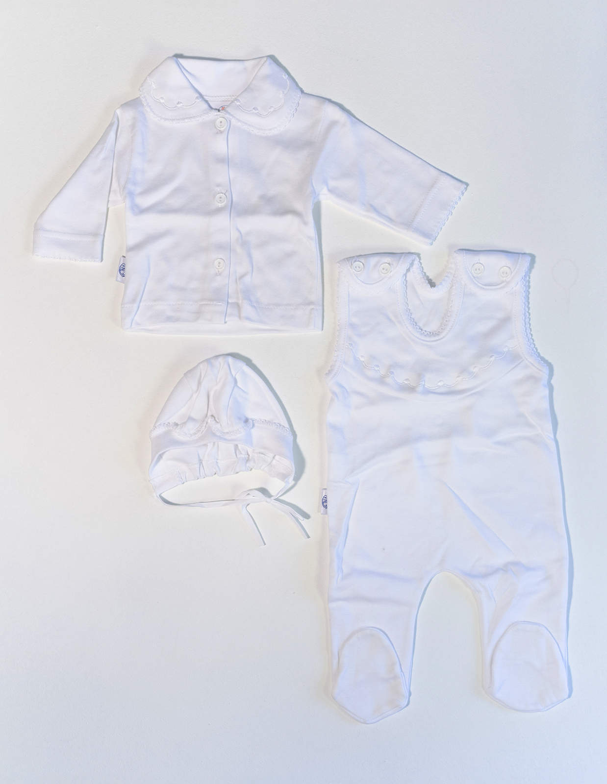 Kojenecký komplet dupaček, košilky a čepičky.