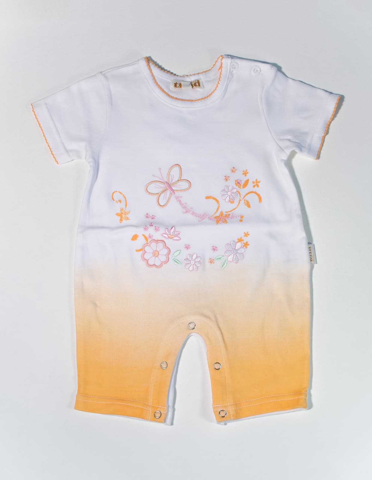 Bavlněný novorozenecký overal pro malou holčičku, zdobený výšivkou.