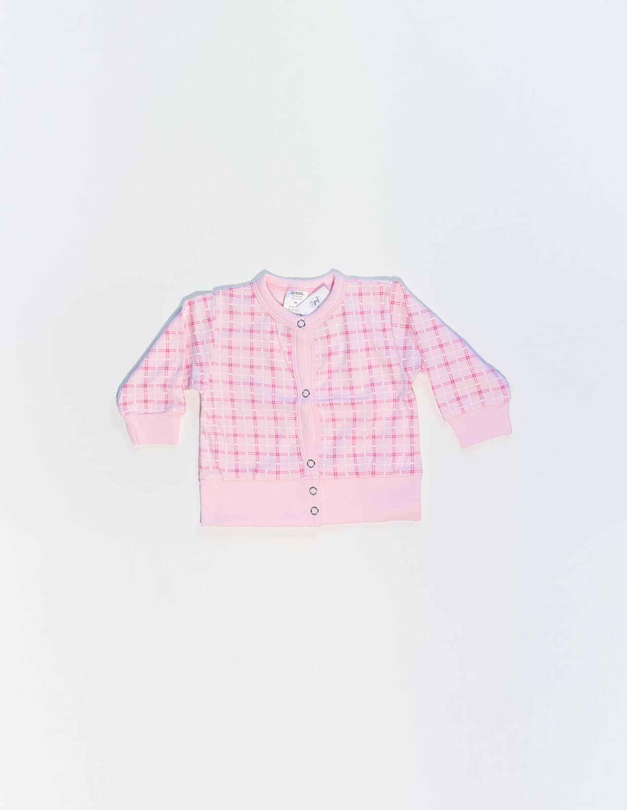 Kostkovaná novorozenecká košilka s praktickým zapínáním na patentky.