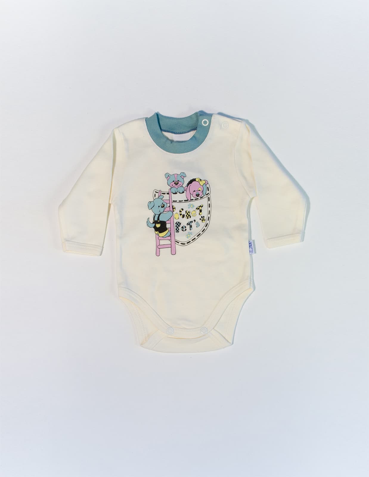 Novorozenecké body s dlouhým rukávem, zdobené veselým potiskem pejsků.