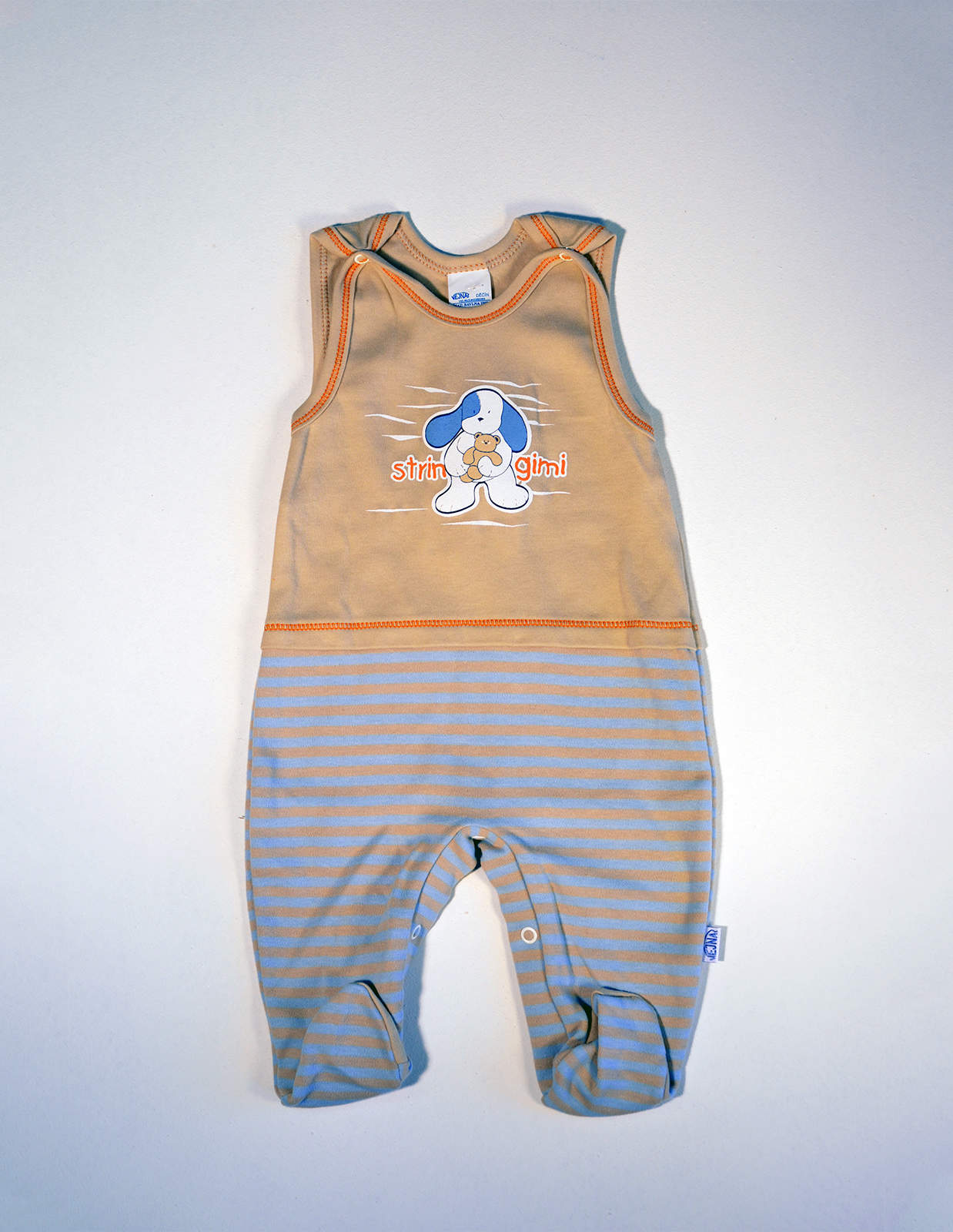Novorozenecké dupačky zdobené potiskem.